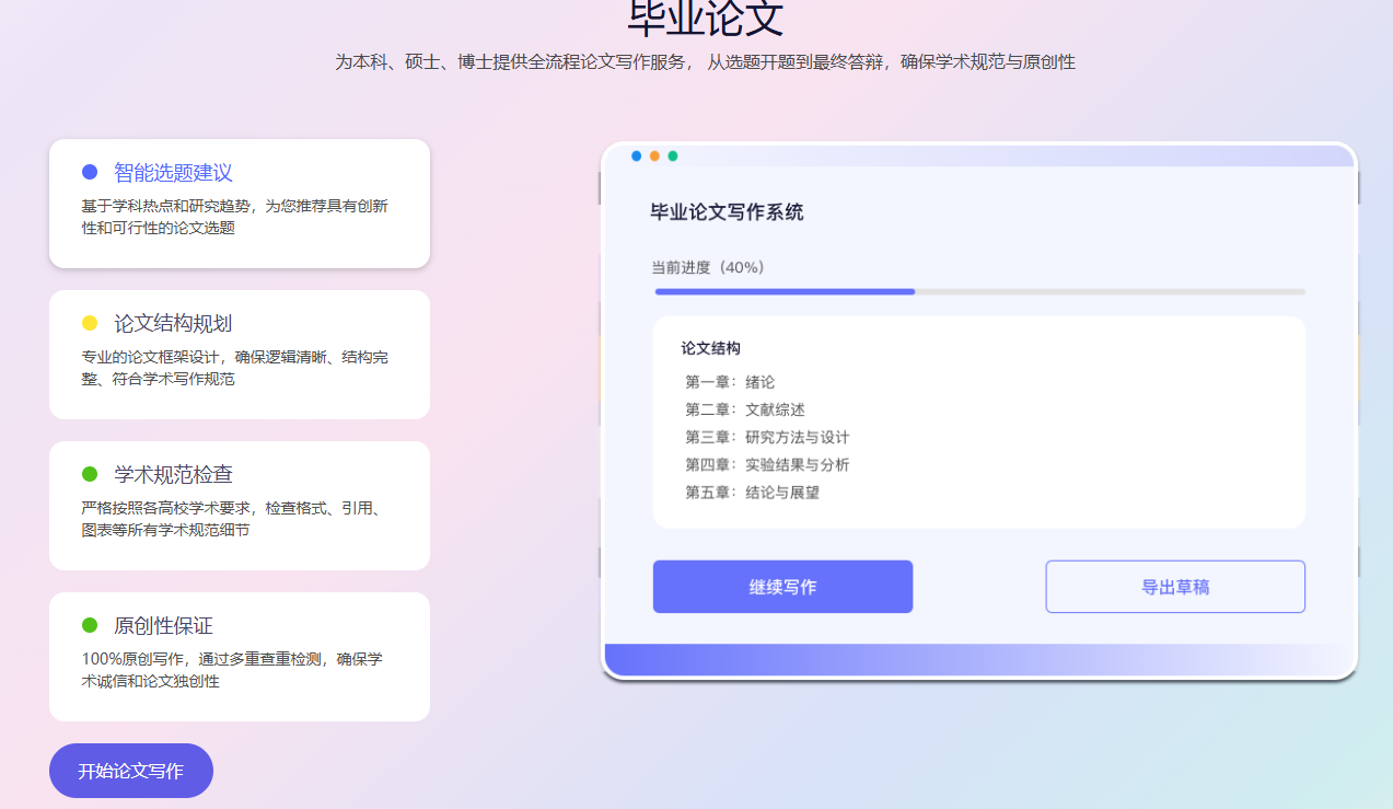 确定研究方向是学术工作的第一步,也是许多人的第一个难点。百考通AI的选题立意功能能够根据用户的专业领域和兴趣方向,智能推荐具有研究价值的课题。无论是专科、本科还是硕博阶段,系统都能适配不同层次的学术要求,帮助研究者找到既符合个人兴趣又具有学术价值的选题。